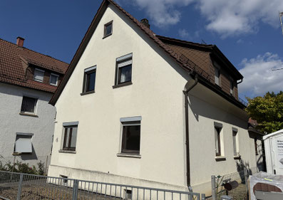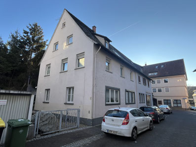 Nach Großbrand im Jahr 1927 wurde das einst stattliche Wohnhaus am ehemaligen Saitenbrunnen mit Gerberei und Kalkerei im Jahr 1931 auf dem ehemaligen Kellerhals aus dem Jahr 1598 wieder neu aufgebaut. Im Jahr 1918 befand sich in dem einst stadtbildprägenden Wohnhaus die Milchannahmestelle. Es handelt sich um eine Doppelhaushälfte mit 2 Vollgeschossen, einem ausgebautem Dachgeschoss und begehbarem Bühnenraum sowie Nutzflächen im Keller-/Untergeschoss. Die dazugehörige Grundstücksfläche beträgt 164m². Im EG ist eine 3-Zimmerwohnung mit Bad und WC mit einer Fläche von 70m². Darüber ist auf der gleichen Fläche eine weitere 3Zi Wohnung mit derselben Ausstattung und Aufteilung. Im Dachgeschoß sind 3 Kammern wohnlich mit Wohnküche und Dusche sowie sep. WC in den 60er Jahren ausgebaut. Die Dacheindeckung mit Ziegel ist nicht gedämmt. Derr alte Gewölbekeller sowie weitere Abstellräume mit Öltank, Waschküche stehen im UG zur Verfügung. Zum Gebäude gehört eine Hoffläche mit Wäschetrockenplatz. Das Wohnhaus ist seit 1749 im Familienbesitz. Das Gebäude ist nicht unter Denkmalschutz. Es liegt innerhalb der gem. §19 DSchG als Gesamtanlage unter Schutz stehenden Altstadt. D.h. alle Änderungen am Gebäude bedürfen einer Genehmigung. Weitere Informationen erteilen wir gerne für Sie bei einer Besichtigung vor Ort.